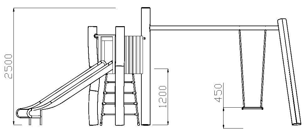 | Višina igrala: | cca 2500 mm, višina podesta: cca 1200 mm |